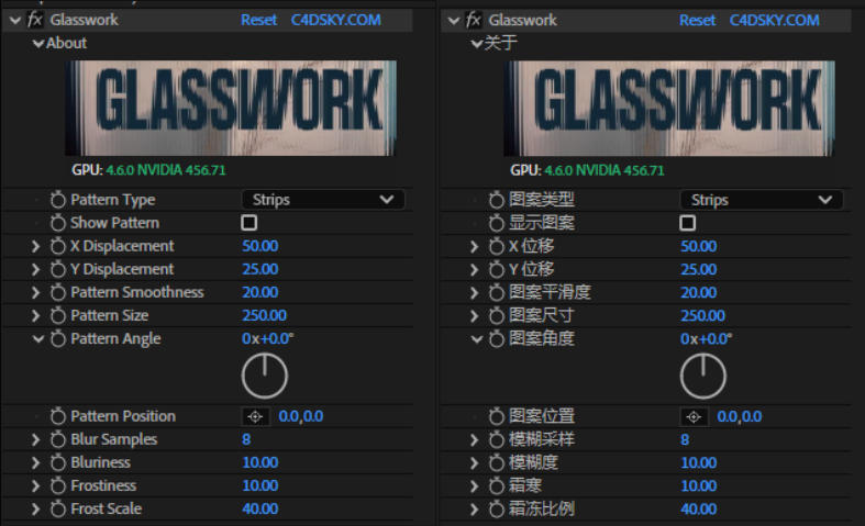 AE/PR插件-真实玻璃折射毛玻璃霜冻扭曲特效插件AEscripts Glasswork V1.2.0 Win