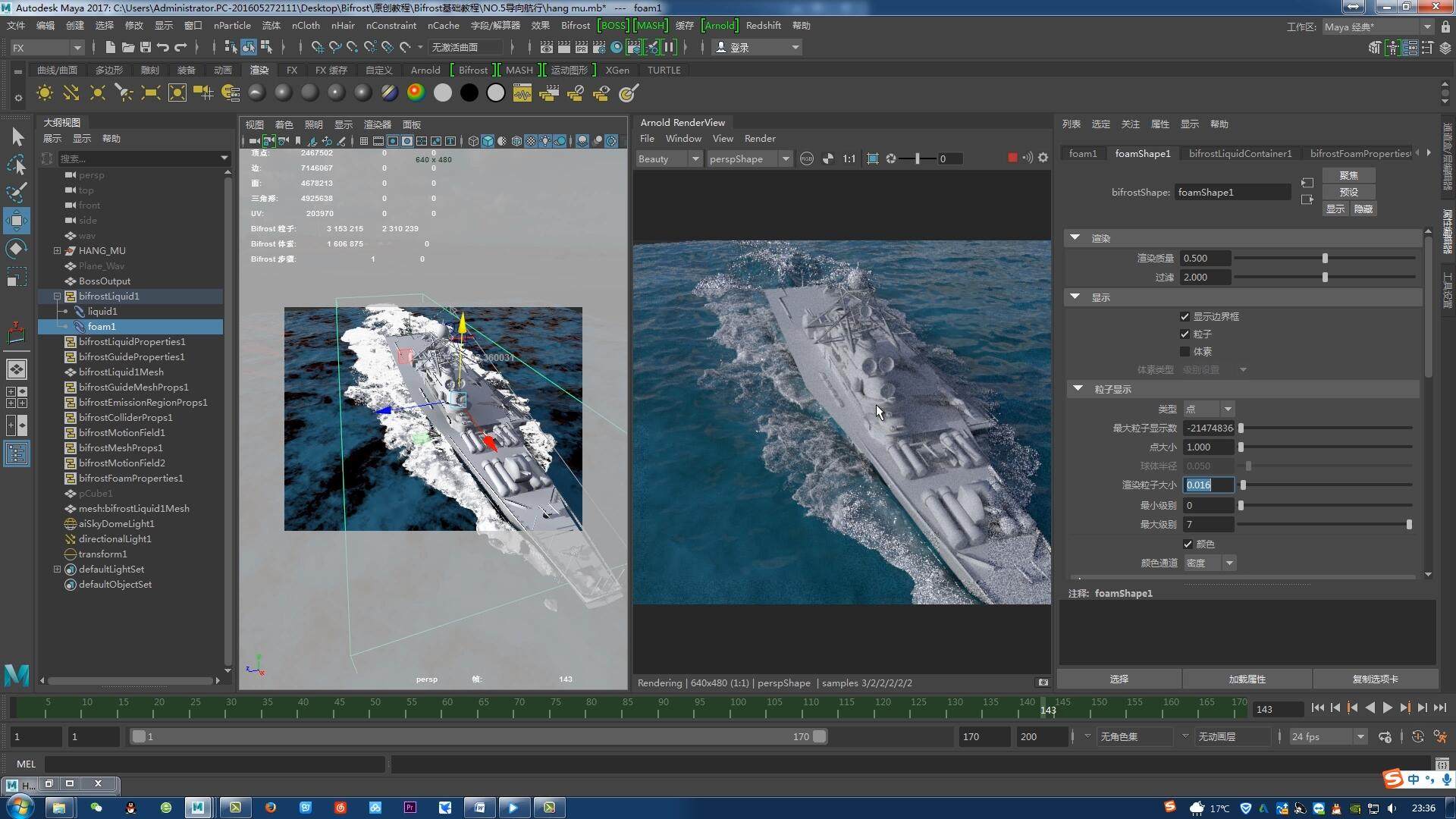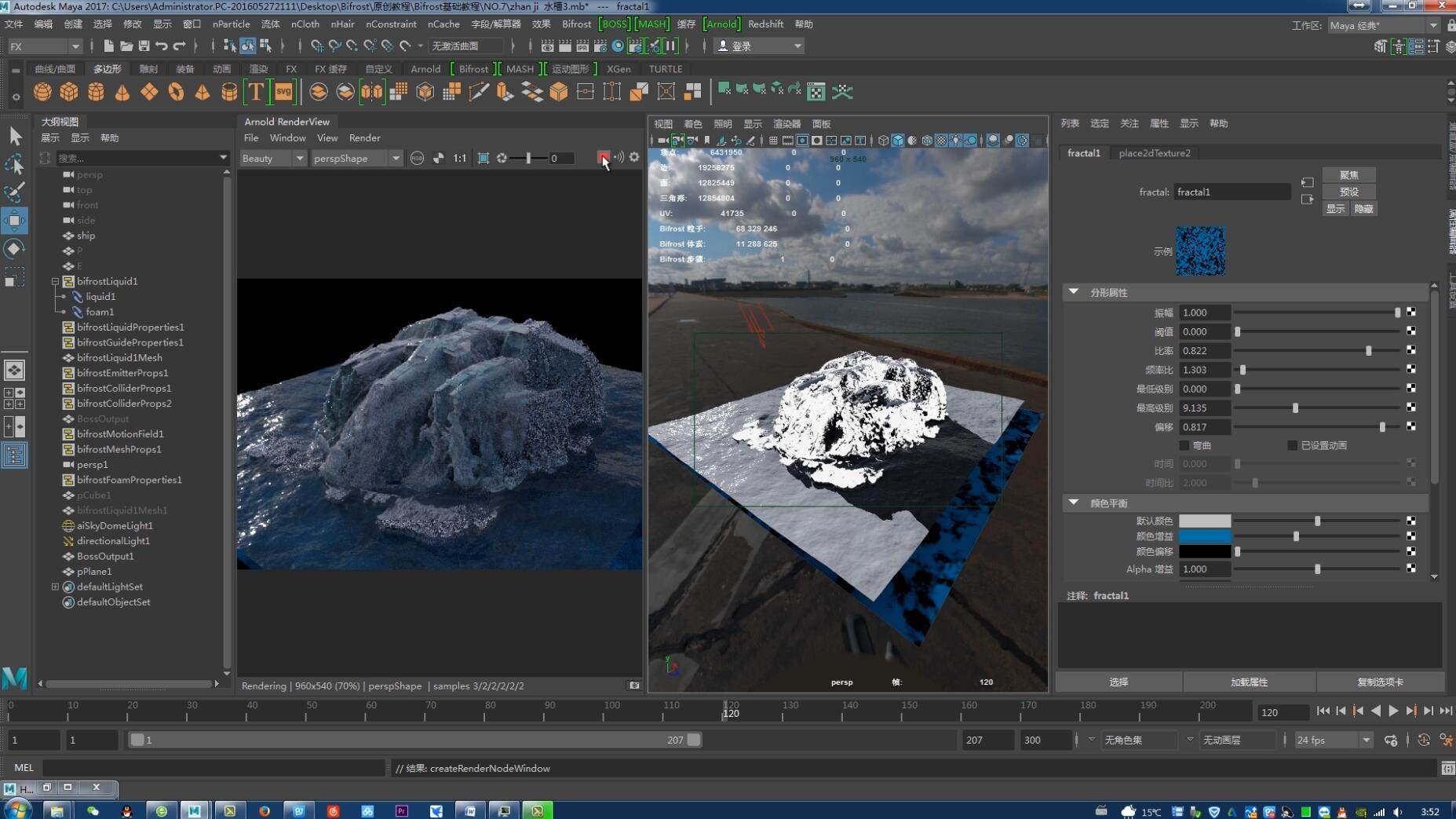 BF(Bifrost)大家都知道它是Naiad的演变版,效果自然不会差,再加上自动桌的优化,它变得非常容易上手,简单易用。虽然参数变得少了,但它不会变得不可控,现有的参数不多不少,每一个参数都有它必要的功能和效果!让我们学习起来得心应手,加上官方的中文帮助文档,作为学习资料,短时间内就能掌握模拟方法,如果有一定的Maya基础,使用起来更是方便。没有基础也不用灰心。常规的渲染,Maya AR渲染很轻松就可以完成,油管上资料很多。可能大婶们又想提H了… H固然好,但是难免会有些CGer还没接触过H,又有大型流体的制作需求。