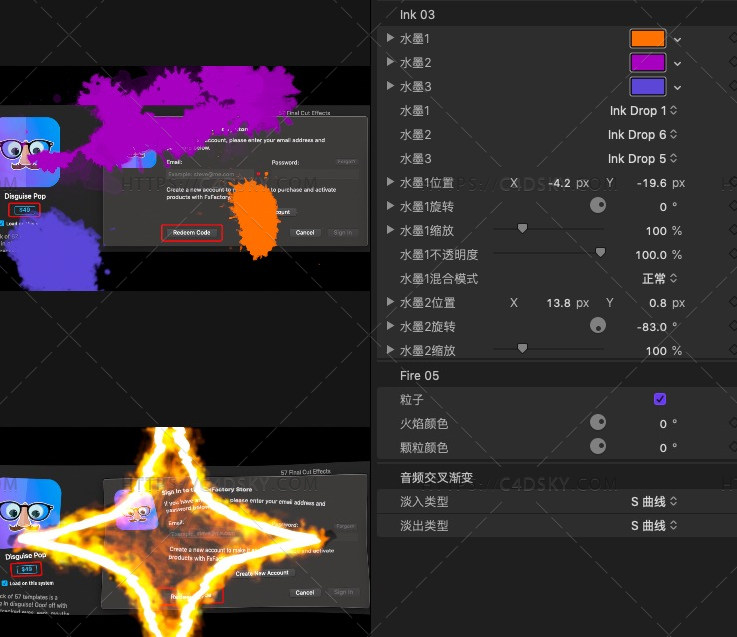 中文汉化版FCPX插件-205个光效火焰水墨烟雾图形故障失真视差漫画笔刷扭曲缩放无缝转场 + 使用教程